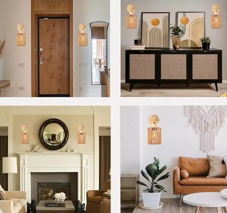 Applique murale rustique en rotin sans ampoule