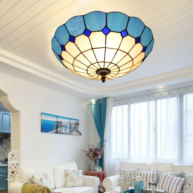 Plafonnier Tiffany bleu rétro - Plage de prix : 169,90€ à 209,90€