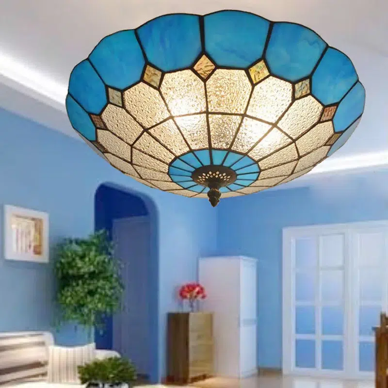 Plafonnier Tiffany bleu rétro