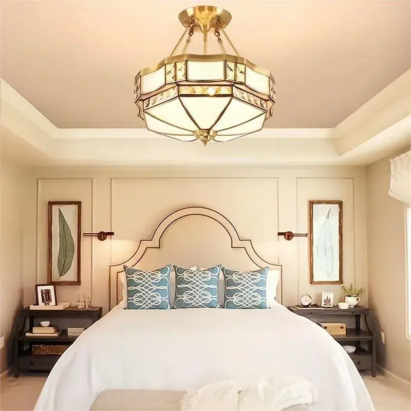 Plafonnier art déco octogonal doré et opaque - Plage de prix : 364,90€ à 484,90€