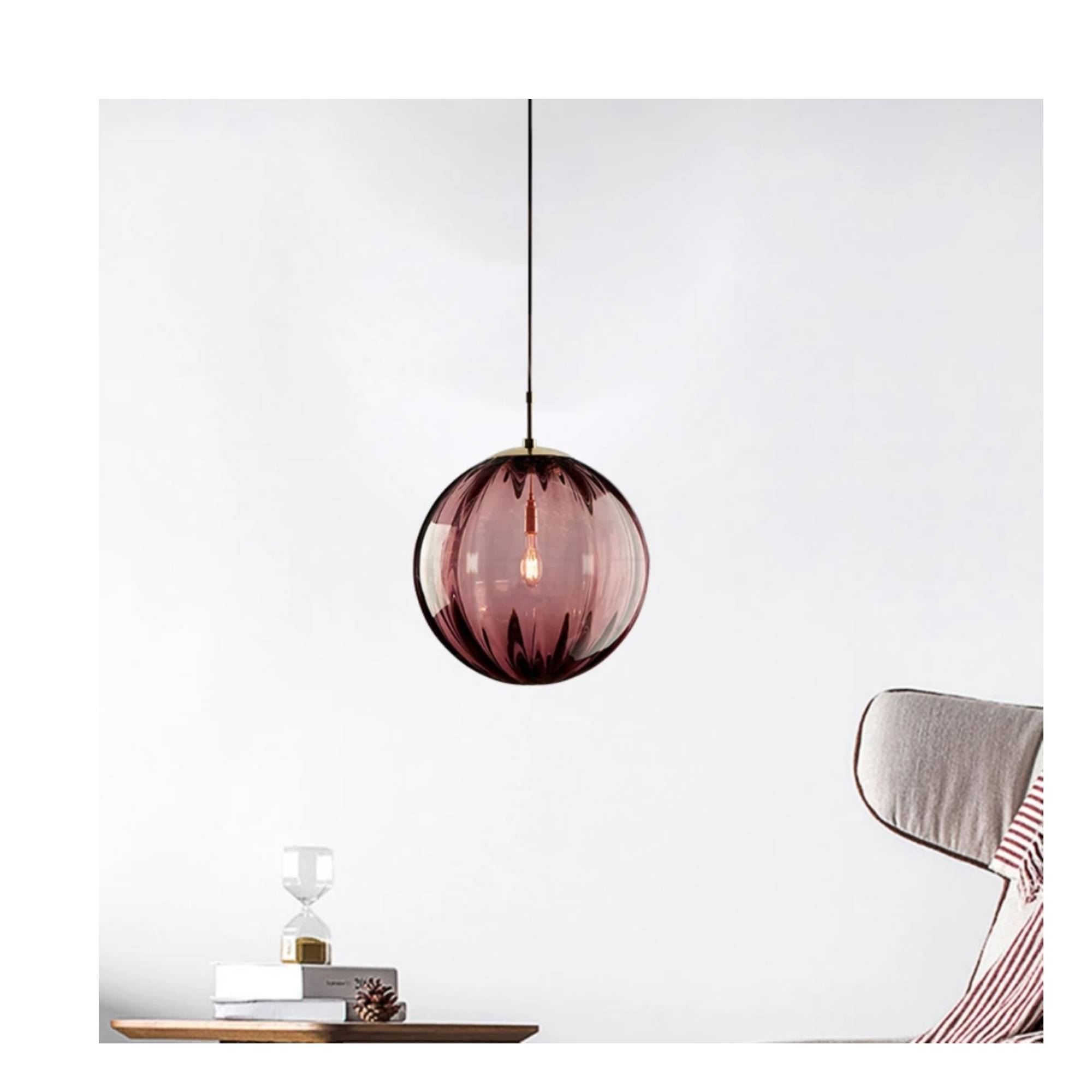 Plafonnier boule en verre coloré