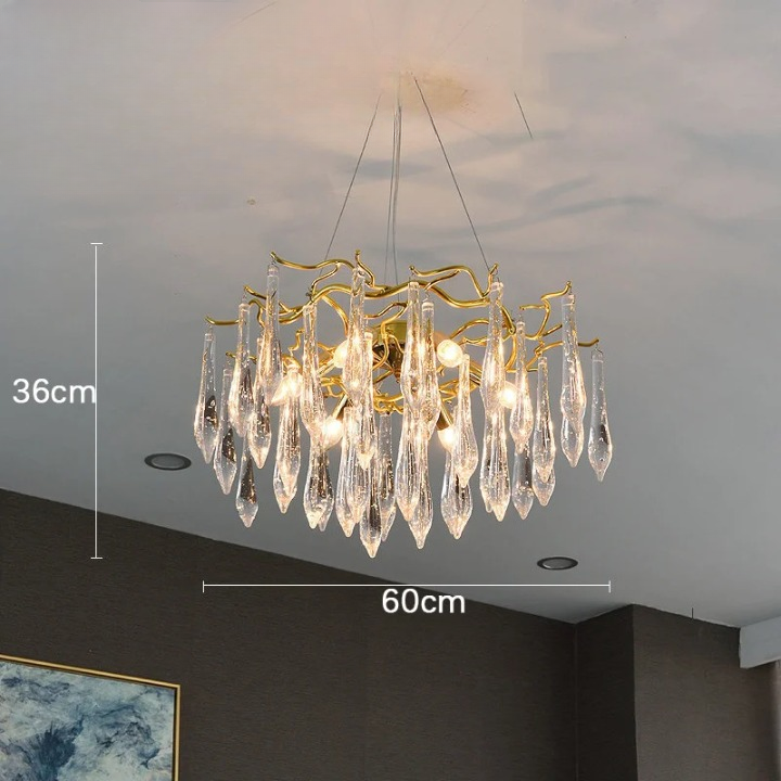 Plafonnier bouquet doré avec cristaux suspendus - Plage de prix : 484,90€ à 924,90€