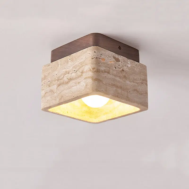 Plafonnier carré en marbre beige et bois foncé minimaliste