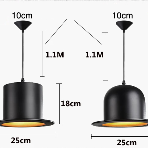 - Dimensions: Diamètre plafonnier : 10 cm, Hauteur câble : 110 cm, Hauteur chapeau : 18 cm, Diamètre : 25 cm