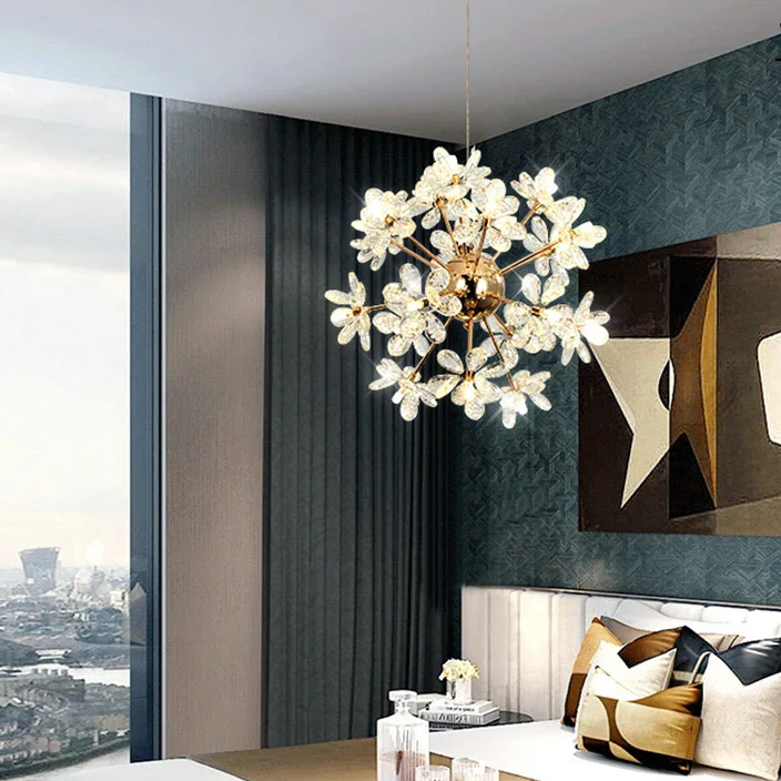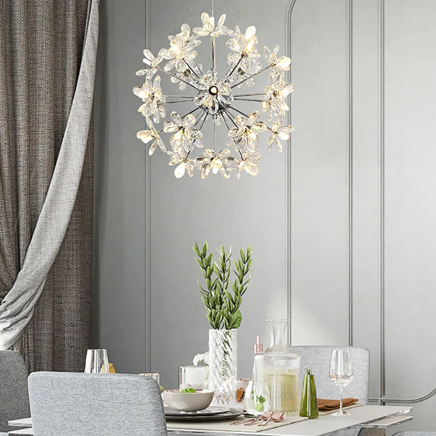 Inspiré du pissenlit, ce plafonnier élégant à 24 LED combine finesse florale et modernité. Ses cristaux diffusent une lumière chaleureuse et poétique. Véritable pièce décorative, il crée une ambiance douce et raffinée, idéale pour sublimer un salon ou une chambre.