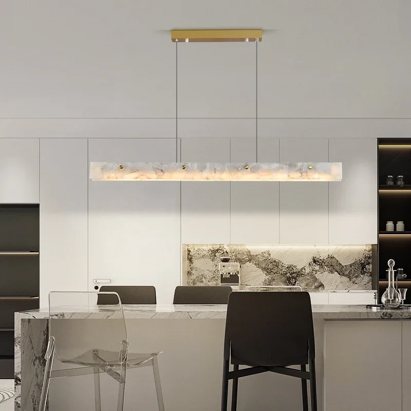 Un plafonnier long et fin, en marbre véritable, pour sublimer une table à manger ou un espace de travail. Design luxueux, lumière nette et hauteur ajustable : une pièce forte pour les amateurs de raffinement et de lignes pures.
