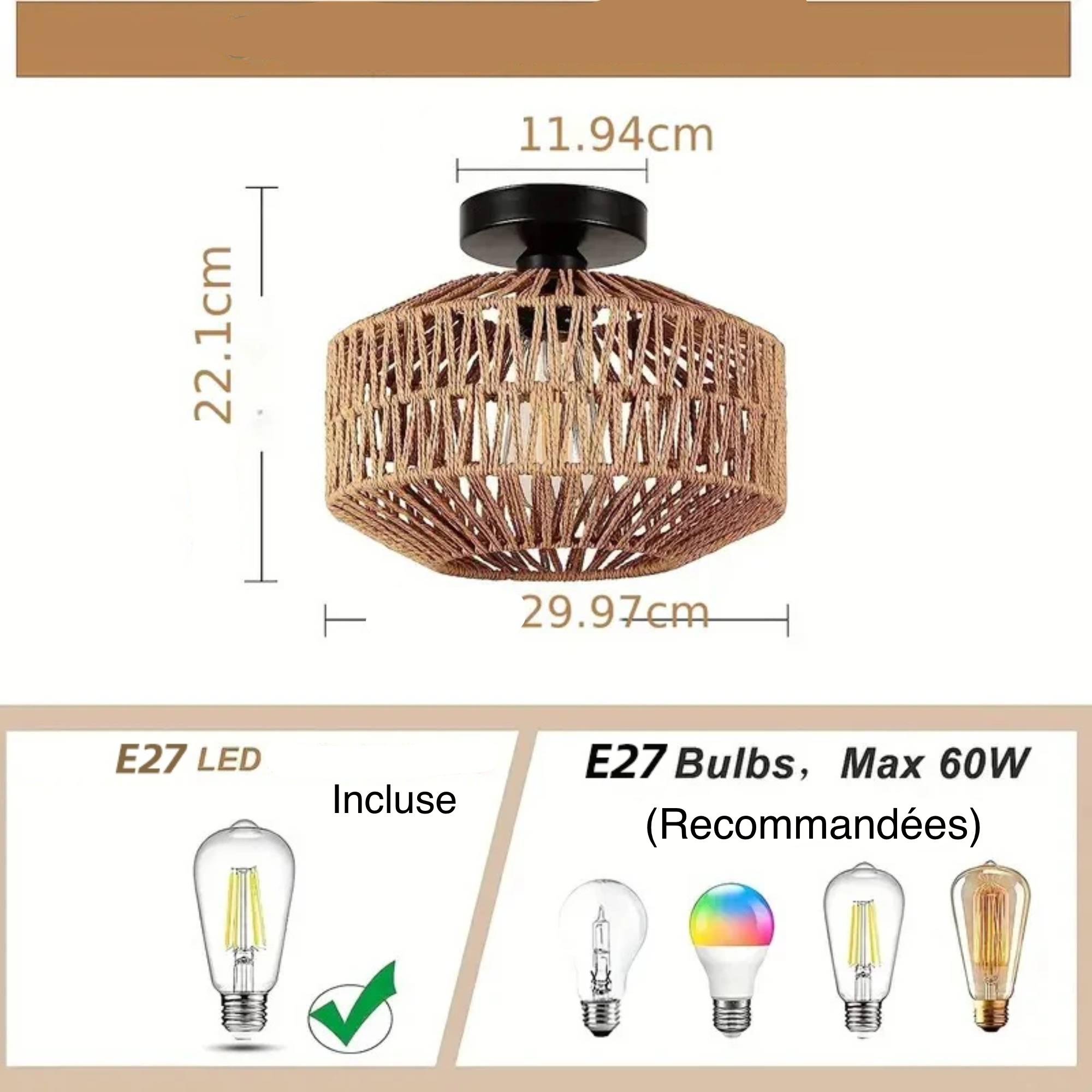 Plafonnier tressé à la main, parfait pour insuffler un esprit bohème et naturel dans votre pièce. Son éclairage tamisé sublime l’ambiance. Installation rapide et structure durable en fibres naturelles. Idéal pour créer une atmosphère cosy et authentique chez soi.