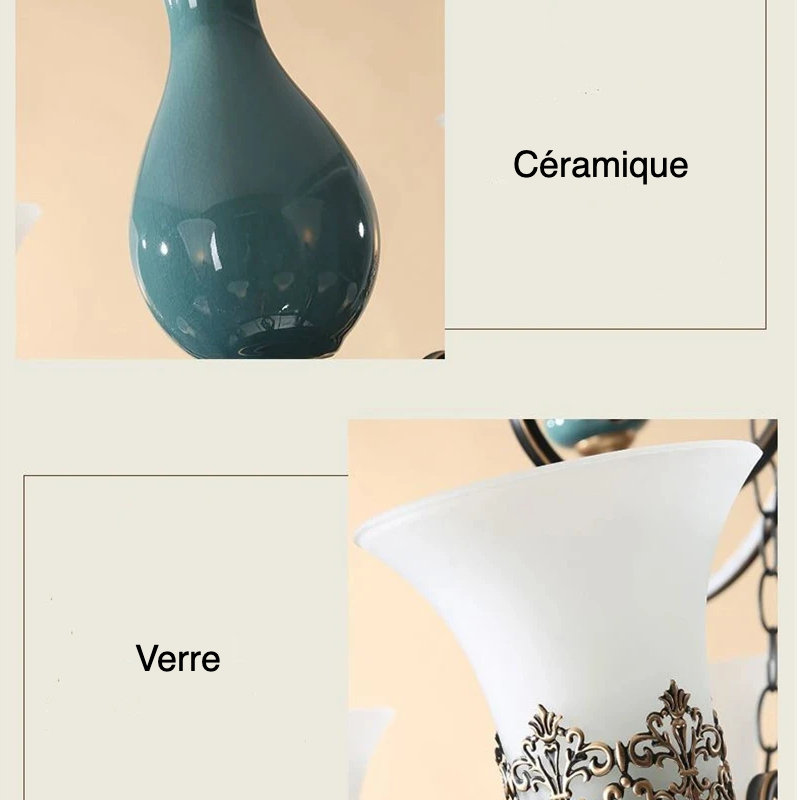 Ce plafonnier majestueux en céramique bleue et dorée conjugue allure d’époque et confort moderne. Sa lumière chaleureuse sublime instantanément une pièce. Une pièce décorative audacieuse, pensée pour les amateurs d’élégance intemporelle.