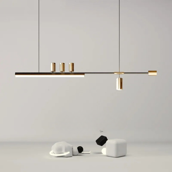 Ce plafonnier suspendu au design moderne séduit par sa forme linéaire et son élégante finition dorée. Idéal pour un éclairage structuré au-dessus d’un bureau, d’une table ou d’un îlot, il allie style contemporain et fonctionnalité dans un format épuré et parfaitement équilibré.